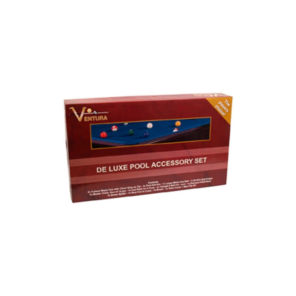 Luxe uitvoering van de Ventura accessoire set voor pool: in één klap een bijpassende set met alles wat je nodig hebt voor 8 en 9 ball voor een prachtprijs.Â