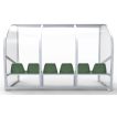 Het frame bestaat uit speciale aluminium profielen en werd tot één geheel gelast. Aan de onderkant is er een opening voorzien voor de luchtcirculatie. Aan de zijkanten en de steunpoten van de banken zijn er verankeringspunten aanwezig om de dug-out op een degelijke en veilige manier vast te zetten. Het frame kan in iedere RAL-kleur gepoedercoat worden.