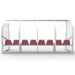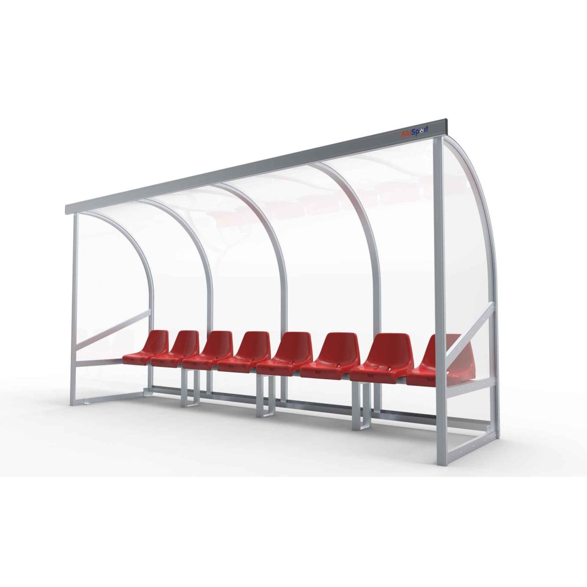 Het frame bestaat uit speciale aluminium profielen en werd tot één geheel gelast. Aan de onderkant is er een opening voorzien voor de luchtcirculatie. Aan de zijkanten en de steunpoten van de banken zijn er verankeringspunten aanwezig om de dug-out op een degelijke en veilige manier vast te zetten. Het frame kan in iedere RAL-kleur gepoedercoat worden.