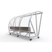 Het frame bestaat uit speciale aluminium profielen en werd tot één geheel gelast. Aan de onderkant is deze dug-out voorzien van zwenkwielen met rem om op een degelijke en veilige manier vastgezet te kunnen worden.Het frame kan in iedere RAL-kleur gepoedercoat worden.