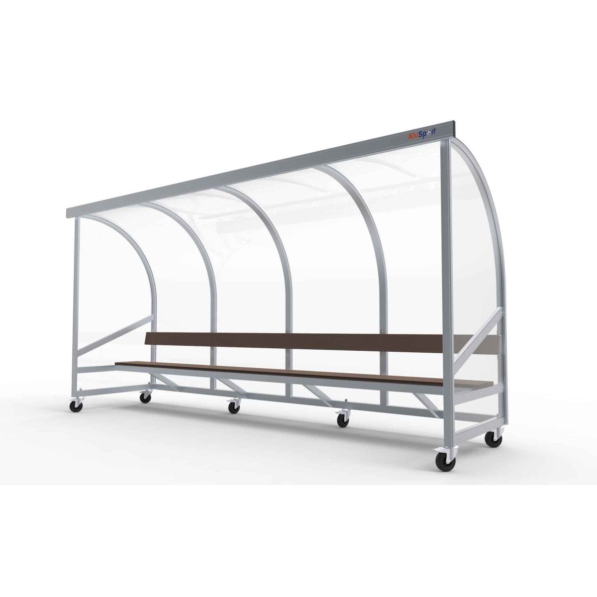 Het frame bestaat uit speciale aluminium profielen en werd tot één geheel gelast. Aan de onderkant is deze dug-out voorzien van zwenkwielen met rem om op een degelijke en veilige manier vastgezet te kunnen worden.Het frame kan in iedere RAL-kleur gepoedercoat worden.