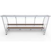 Het frame bestaat uit speciale aluminium profielen en werd tot één geheel gelast. Aan de onderkant is deze dug-out voorzien van zwenkwielen met rem om op een degelijke en veilige manier vastgezet te kunnen worden.Het frame kan in iedere RAL-kleur gepoedercoat worden.