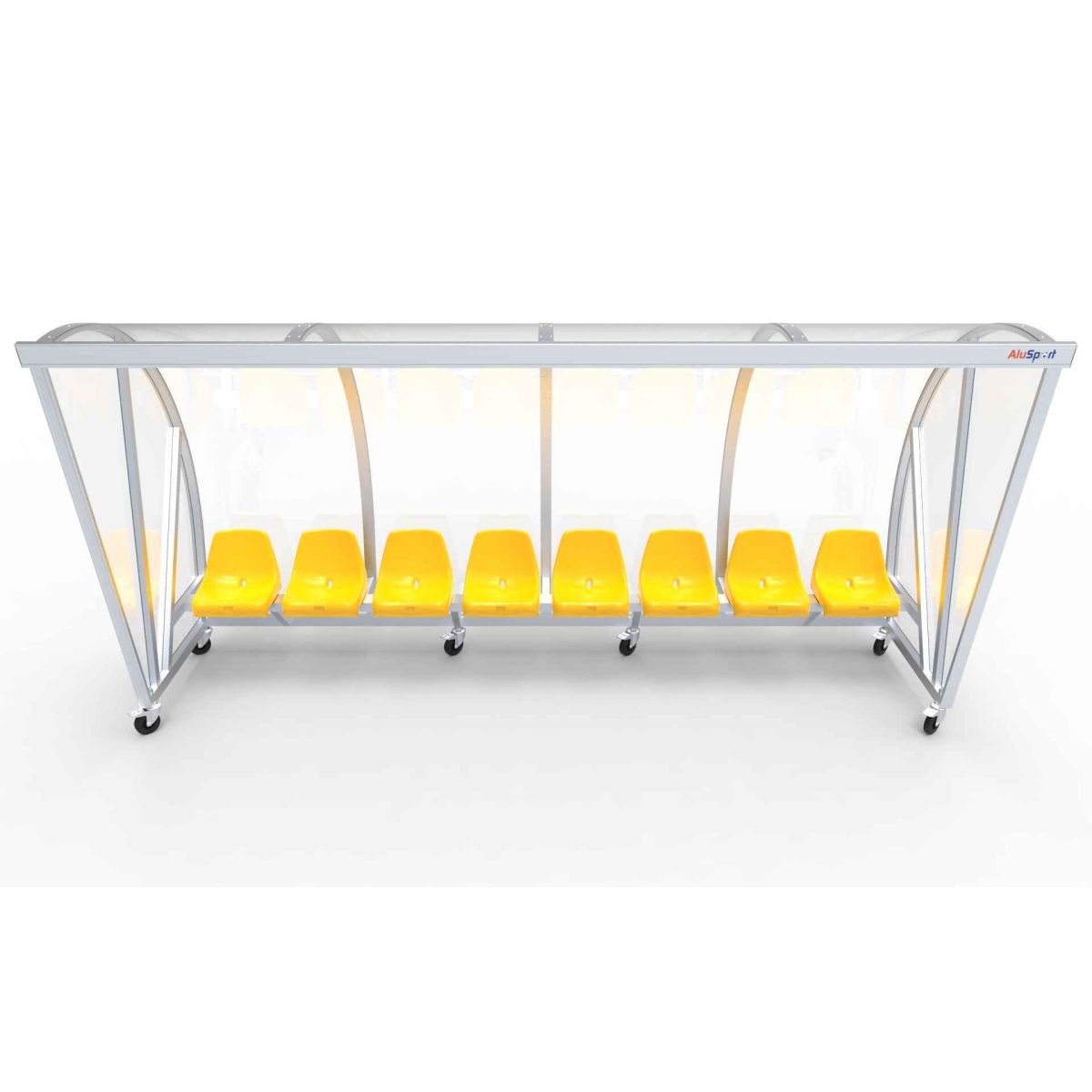 Het frame bestaat uit speciale aluminium profielen en werd tot één geheel gelast. Aan de onderkant is deze dug-out voorzien van zwenkwielen met rem om op een degelijke en veilige manier vastgezet te kunnen worden. Het frame kan in iedere RAL-kleur gepoedercoat worden.