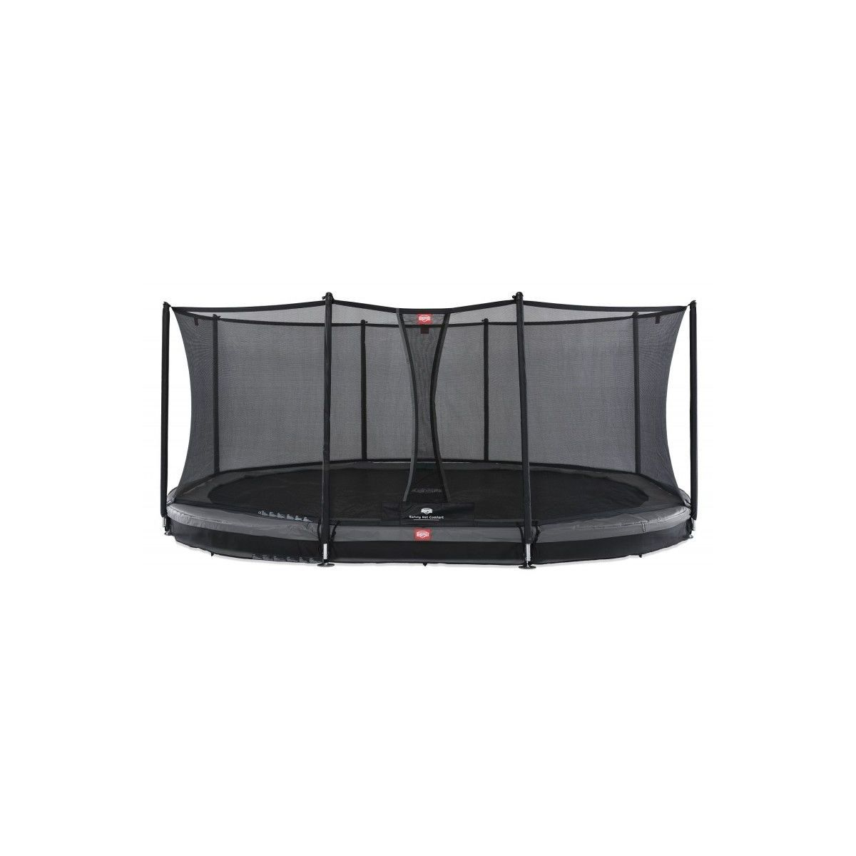 Onder de trampoline is een framenet geïntegreerd. Hierdoor kunnen huisdieren, kinderen of bepaalde voorwerpen niet onder de trampoline in de uitgegraven kuil terechtkomen.