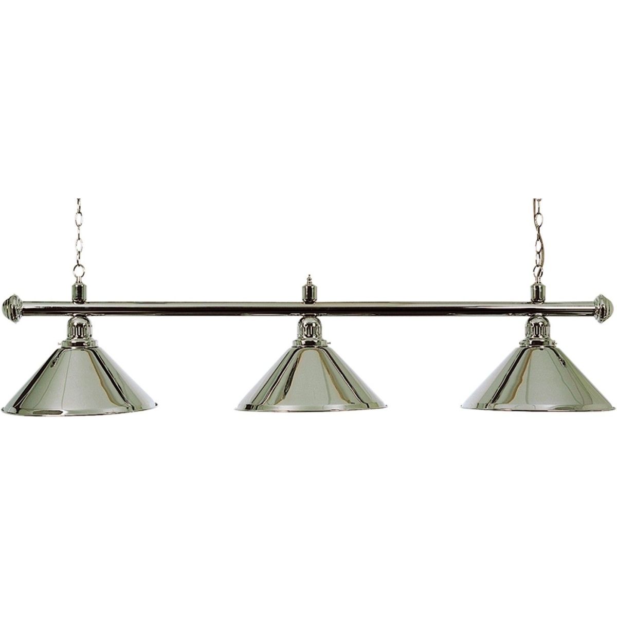 Biljartlamp pool met drie Chromen kappen