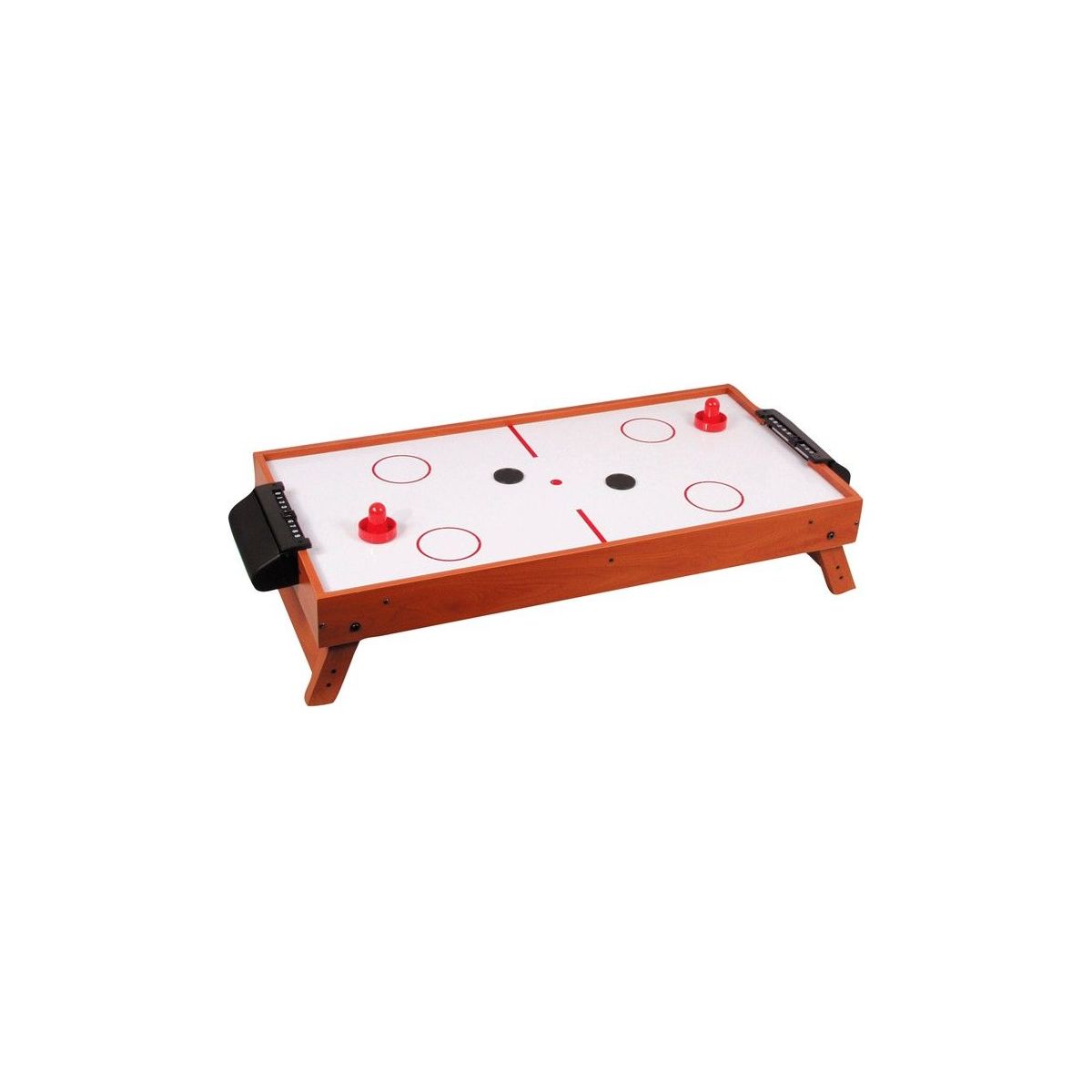 Door de kleine maar krachtige motor zweeft de puck gemakkelijk en snel over het speelveld van dit handige airhockey tafel model. Het spel heeft opstaande randlijsten en 2 scorecounters.