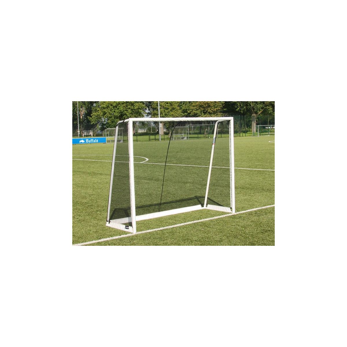 Wat de Buffalo doelen speciaal maakt is de drievoudige bevestiging van de extra dikke voorposten met de net posten, waardoor er een hoger doel is gecreëerd. De goalposten zijn uiterst robuust, waarbij de 2 posten voor extra dik zijn uitgevoerd, voor het echte voetbalgevoel! Het verankeringsysteem bestaat uit flexibele haringen, waardoor het doel zeer stevig en stabiel staat en het eenvoudig te verplaatsen is. Om het doel nog veelzijdiger te maken wordt er standaard een trainingsscherm bijgeleverd.