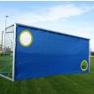 Gaasnet in gebreid UV-gestabiliseerd polyethyleen. Op te hangen in de doelopening, voor het gericht oefenen van de traptechniek. Rondom gezoomd met messing ringen elke 50 cm en voorzien van 2 openingen met een doorsnede van 50 cm, met duidelijk zichtbare gele rand.