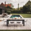 Deze pooltafel is optioneel uit te breiden met bijpassende tafelbladen (apart verkrijgbaar), waardoor je ze eenvoudig omtovert tot een elegante eettafel. Perfect voor mensen die op zoek zijn naar ruimtebesparende oplossingen of multifunctioneel buitenmeubilair.