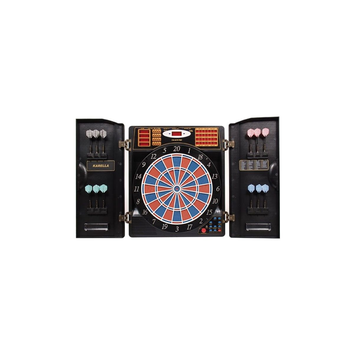 Zeer compleet elektronisch dartboard in een kabinet. Speel maar liefst 38 spelvarianten met individeeel aanpasbare moeilijkheidsgraad.
