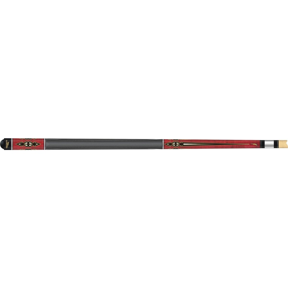 Door zijn innoverende rubberen grip ziet hij er niet alleen spectaculair uit, maar geeft hij ook optimaal spelplezier. De Esdoorn shaft met 13mm tip en professionele taper in Amerikaanse stijl is accuraat en precies. Het onderstuk heeft een harde glans lak wat de keu beschermt tegen lichte schokken.