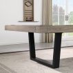 - Slanke vormgeving dankzij stalen frame: De ultra slanke ‘buik’ van deze tafel wordt mogelijk gemaakt door een speciaal ontworpen, zwaar deelbaar stalen frame . Dit zorgt voor maximale stevigheid en stabiliteit, terwijl het tegelijkertijd een minimalistisch en open karakter behoudt.