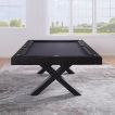 - Minimalistisch, krachtig design: De tafel heeft een slank profiel dankzij het deelbare stalen frame , dat samen met de zwarte metalen poten zorgt voor een stevige basis én ruimtelijk karakter. Dit maakt hem opvallend elegant zonder in te leveren op stevigheid.