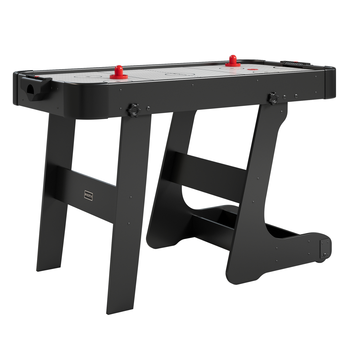 De NORTH Arctic Airhockeytafel Zwart/Wit 4FT biedt een perfecte balans tussen speelplezier, gebruiksgemak en compact design. Deze airhockeytafel is ideaal voor hobbygebruik en gezinnen die willen genieten van een levendig potje airhockey zonder veel ruimte in te nemen. Dankzij het verticaal opklapbare ontwerp met kwielen kan de tafel eenvoudig worden opgeborgen en verplaatst, zelfs door één persoon. De krachtige elektrische motor met blower zorgt voor een constante luchtstroom, zodat de puck soepel en snel over het MDF-speelveld met PVC-coating glijdt. Daarnaast zorgen de stelbouten voor optimale stabiliteit tijdens het spel, en is er een handig opbergvakje voorzien voor pucks en pushers.