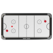 De krachtige elektrische motor/blower (220–240V) zorgt voor een gelijkmatige luchtstroom, waardoor de puck moeiteloos over het speelveld glijdt. De elektronische LED-scoreteller met geluid bevindt zich aan de lange zijde en toont de stand in de teamkleuren blauw en rood. Het geluidseffect kan eenvoudig worden in- of uitgeschakeld, waardoor de tafel even geschikt is voor huiselijk gebruik als voor kantoren en scholen. Het gladde witte speelveld met zwarte airhockeymarkeringen is vervaardigd uit MDF met een duurzame coating voor een vlotte, nauwkeurige gameplay.