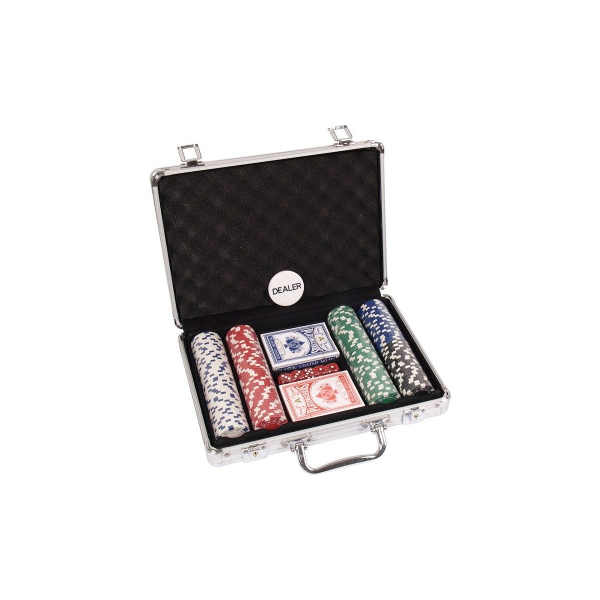 Mooie aluminium koffer pokerset met 11,5 grams chips. Goede kwaliteit! Let op, de kleuren van de chips in de koffer kunnen afwijken van de afbeelding.