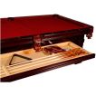 De Riva heeft opvallende vierkante poten in koloniale stijl. Uniek aan de Riva is de verborgen lade voor accessoires, waarin je meerdere keuen, ballen, krijt, en nog veel meer uit het zicht kunt opbergen!