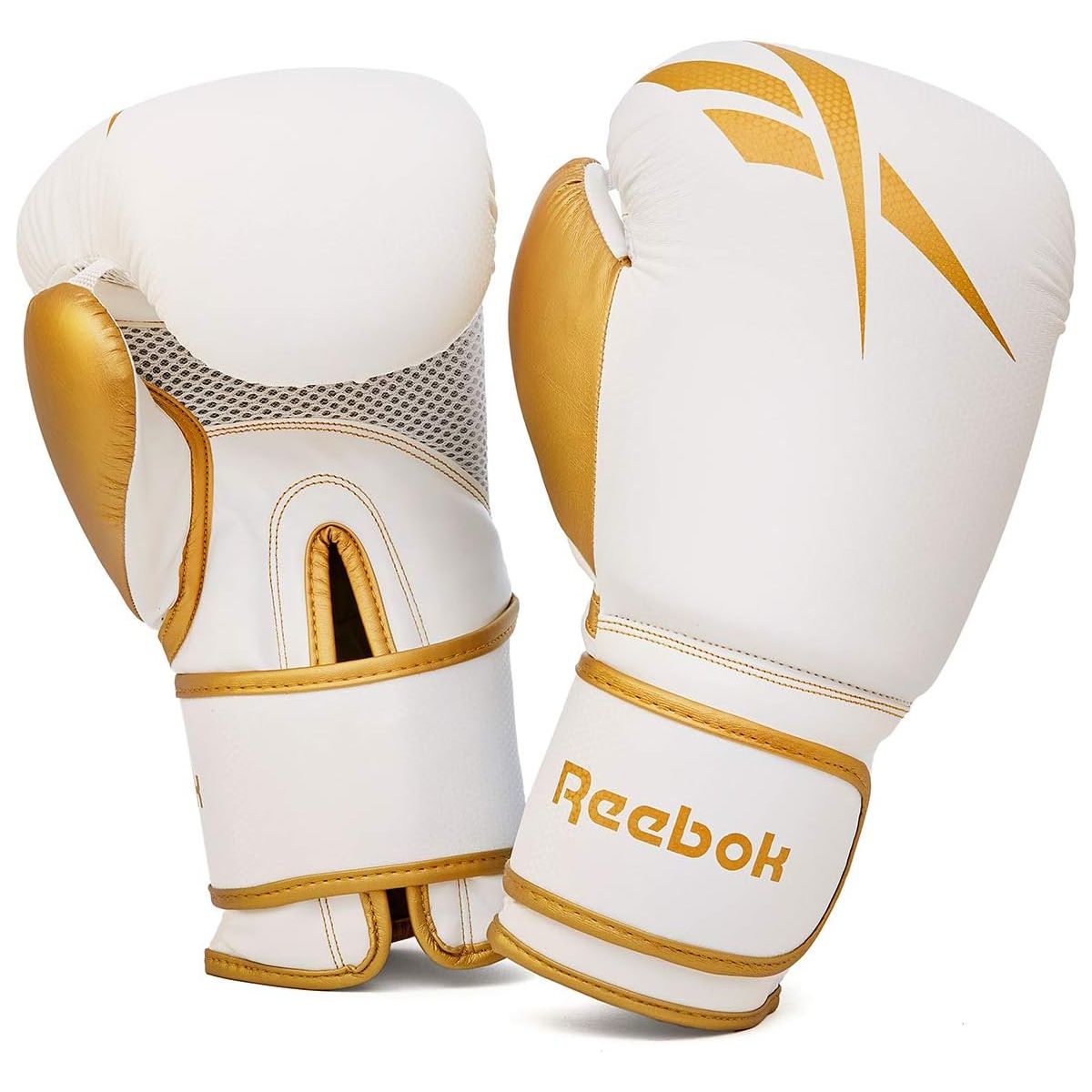 Deze Reebok goud/wit gekleurde bokshandschoenen hebben een prachtig design en blinken ook uit in bescherming en comfort door het gebruik van het Tetra Impact System. Het Tetra Impact System bestaat uit 4 technologieën: gel schokabsorptie, versterkte polsbescherming, injectie schuimvulling en ventilatie.