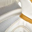 Deze Reebok goud/wit gekleurde bokshandschoenen hebben een prachtig design en blinken ook uit in bescherming en comfort door het gebruik van het Tetra Impact System. Het Tetra Impact System bestaat uit 4 technologieën: gel schokabsorptie, versterkte polsbescherming, injectie schuimvulling en ventilatie.