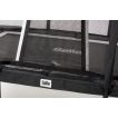 Het frame is gemakkelijk te monteren doordat het over een kliksysteem beschikt. Hierdoor komen er weinig schroeven aan te pas. De buizen hebben een diameter van 38.1mm en een wanddikte van 1.5mm waardoor je er zeker van mag zijn dat je op een stevige trampoline zal springen.