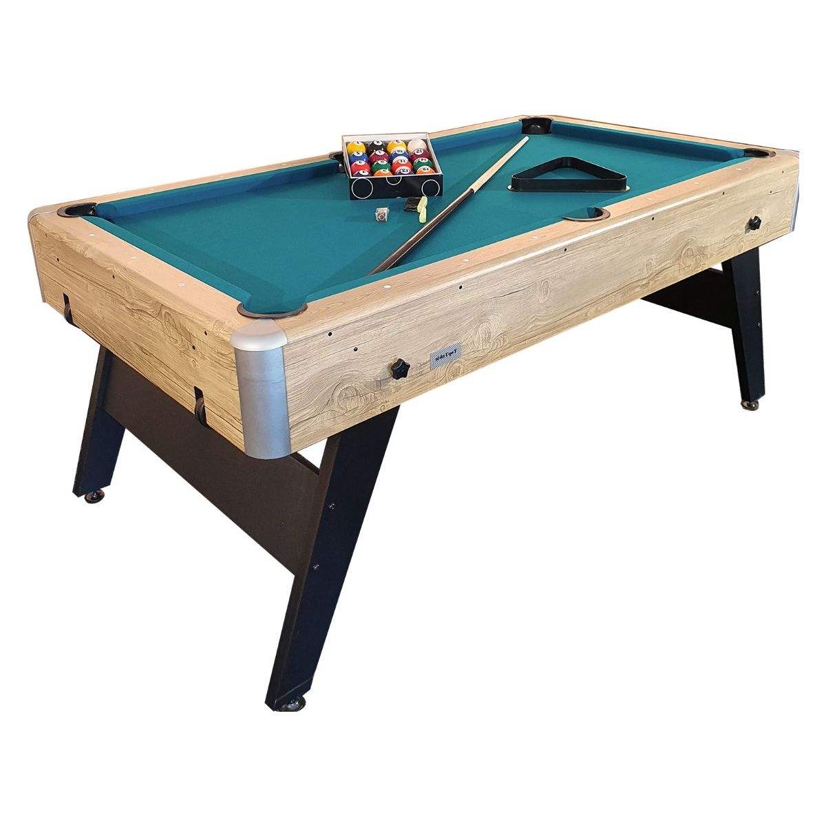 De TopTable Pooltafel Magiq-Wood 6,5FT is de perfecte keuze voor iedereen die thuis wil poolen maar beperkte ruimte heeft. Dankzij de volledig inklapbare poten met handdraai grepen en memory plates staat de tafel altijd in de juiste positie. De geïntegreerde hardrubber wielen aan één zijde maken het verplaatsen eenvoudig, terwijl de compacte opbergmaat ideaal is voor kleinere ruimtes.