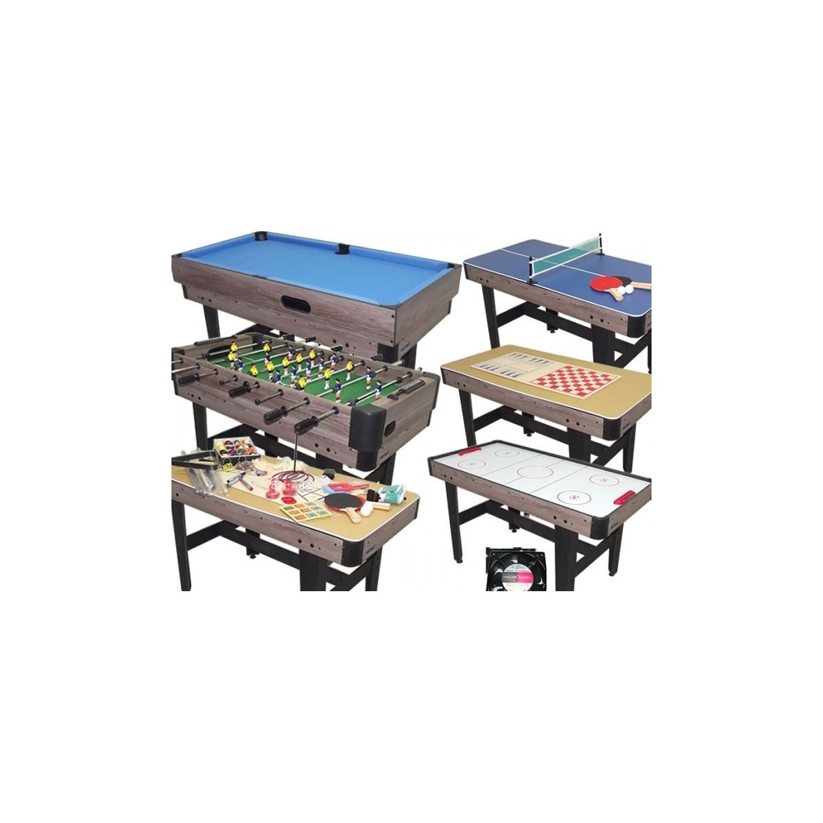 - 16 spellen in één tafel: Pool, voetbal, airhockey, tafeltennis, schaken, backgammon, shuffleboard, ringgooien, bowlen, blackjack, tic-tac-toe, hoefijzer gooien, dobbelspel en meer.